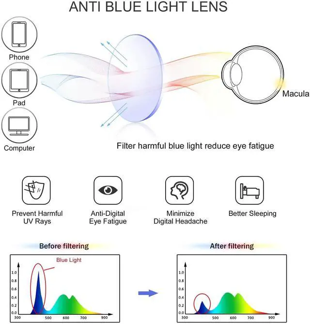 [Blue Light Blocking Glasses] Blue light blocker with UV400 protection, help you resist 90% harmful blue-ray, reduce discomfort from TV, phone, digital screen and reading under fluorescent lights. ^^ [HD Lens] Ultra-transparent lens with high light transmittance to prevent color distortion. No color difference, restore the true color. Give you a clear vision when play computer and laptop. ^^ [Lightweight Material] Ultra lightweight and flexible, put no stress on your nose ensuring comfort for long periods of time. ^^ [Classic Unisex Design] Square frame glasses fit perfectly and look good on all faces for men and women, you can protect your eyes while looking stylish.