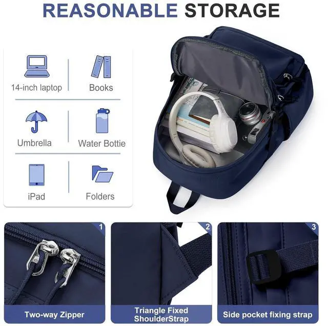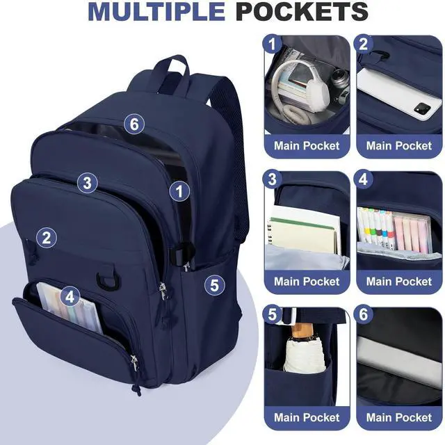 QUALITY FABRICMade of high quality waterproof nylon fabric, durable and easy to clean. Casual backpack with high quality SBS zippers, the two-way zipper is made of high quality metal, smooth to use and ensure long-lasting use. ^^ EXTRA LARGE CAPACITY This backpack offers plenty of storage space, perfect for everyday use. The backpack has four pockets of varying sizes to keep your laptop, iPad, mobile power, camera, books, and anything else you need to keep your belongings organized. In addition, there is a separate computer compartment in the main pocket that can hold up to a 15.6 -inch laptop.