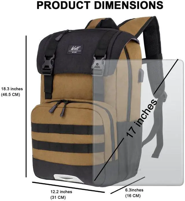 WOLT Laptop Backpack with USB Charging Port Fits Up to 17 Inch Laptop, College Backpack for Men Women, Computer Business Bookbag, Brown