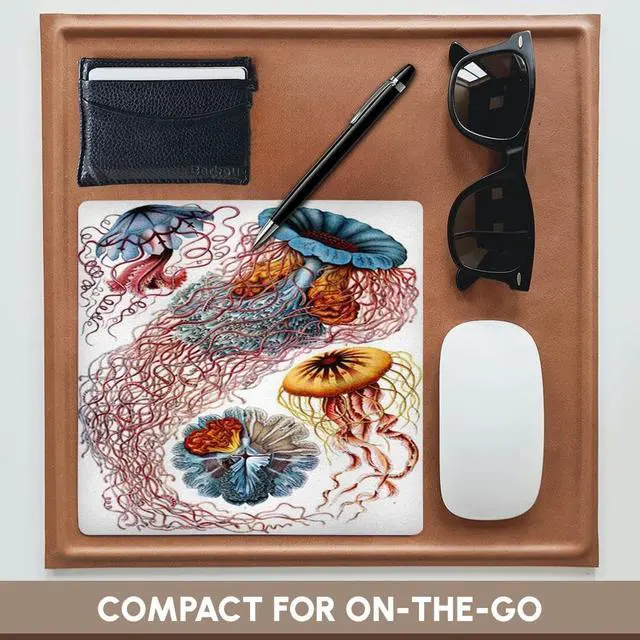 1904 German Biologist Vintage Drawings Of Jellyfish Mouse Pad is 8" x 8" x. 25" and is made of heavy-duty recycled rubber. Matte finish image will not fade or peel. Machine washable using a mild detergent and air dry.