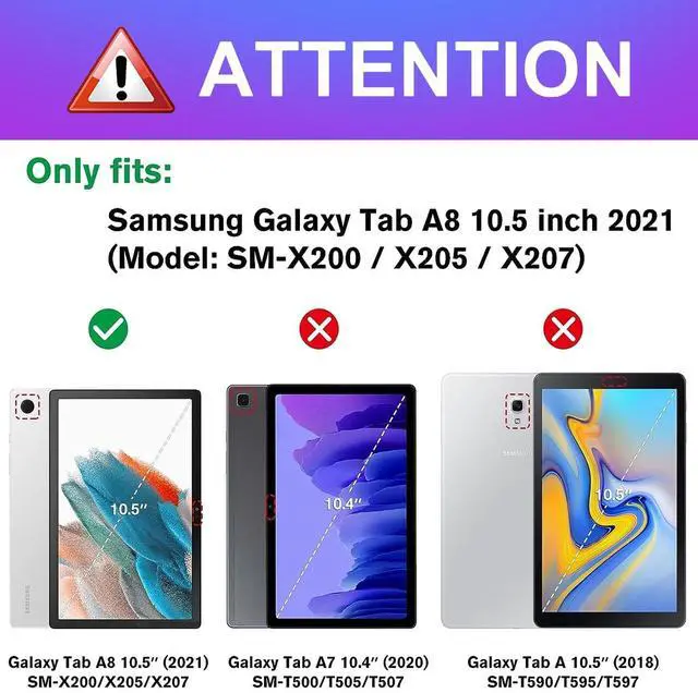 ^^ Adjustable AnglesThe tablet case of this for samsung galaxy a8 case makes your tablet can stand at 3 different positions on the table. Provide you comfortable viewing and typing experiences. ^^ MaterialMade of high quality durable PU leather and soft TPU, this for Samsung Tablet A8 case provides good protection against drops and shocks, it is stain resistant and easy to clean.