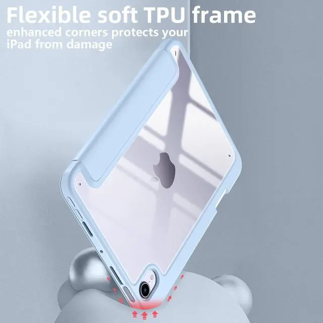 ^^ Full Protection: Combined durable PU exterior, soft TPU frame with crystal clear back(non-yellowing), and enhanced corners to protect your iPad mini A17 Pro from accidental damage.