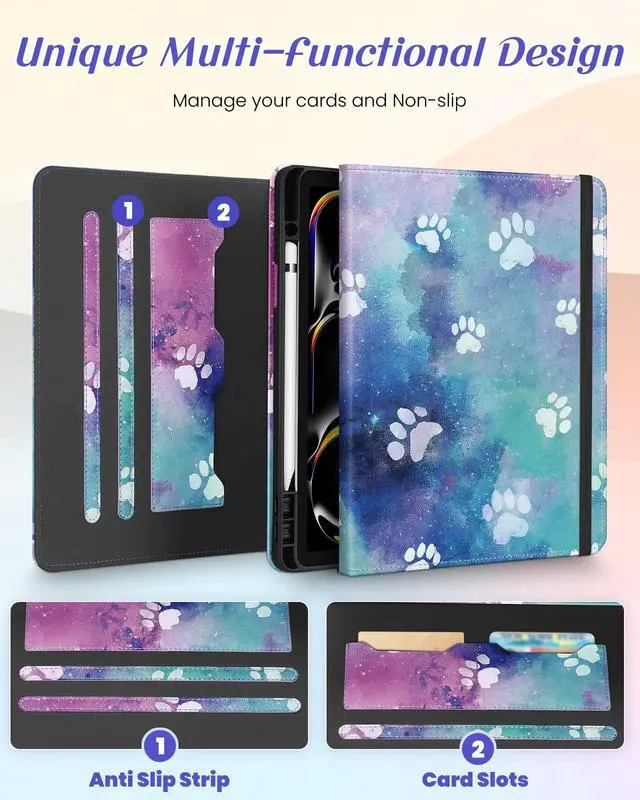 Multi-Functional Design: This for iPad Pro case 13 inch M4 2024 features an elasticized cord strap, which ensures that your tablet closes securely, provides slip or drop protection. It also has two card slots designed to hold your bank cards business cards and other cards
