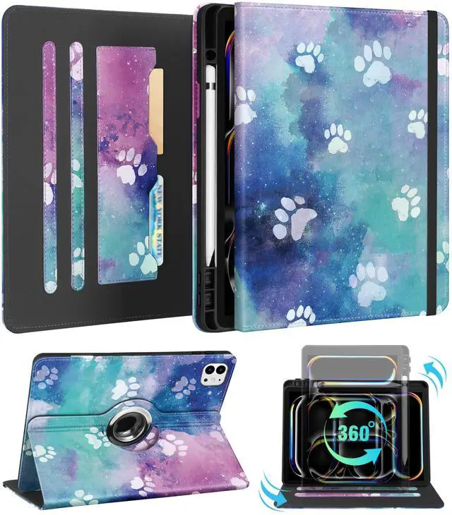 Kidcube for iPad Pro 13 Inch Case M4 2024 - Women Girls Cute Rotating Stand Folio Cover with Pencil Holder & Card Slot Kawaii Cartoon Cool Dog Design for iPad Pro 13 Inch Case 2024 (A2925 A2926 A3007)