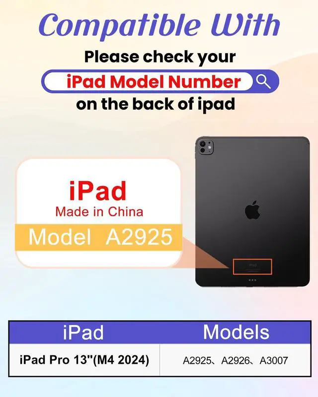 Compatibility: This case is only compatible with iPad Pro 13 Inch Case 2024 (A2925 A2926 A3007).