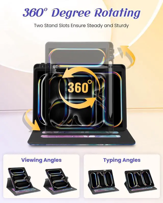 Rotating Stand: This for iPad Pro 13 inch case 2024 with an functional rotating stand design, supporting your devices to switch between landscape and portrait orientations. While 2 anti-slip strip design allow for multiple horizontal stand angles for comfortable viewing or typing ^^