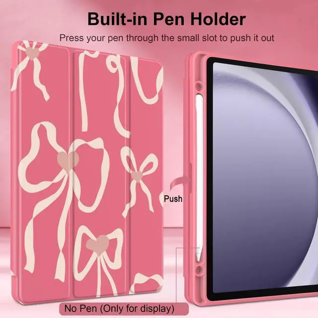 MEEgoodo Case for Samsung Galaxy Tab A9 Plus 11 inch Cover 2024 2023 with S Pen Holder, Tablet Case with Transparent Acrylic Back Shell + Trifold Stand + Auto Wake/Sleep,Aesthetic Coquette Ribbon Bow