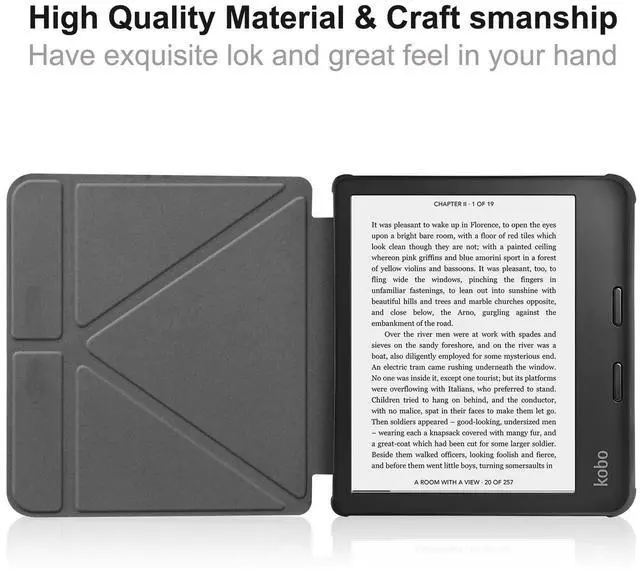 (1) 100% brand new; Only compatible for Kobo Sage 8.0 inch E-Reader Released 2021. Not compatible with any other devices. Please kindly check the model number before purchase. (2) Smart Auto Wake/Sleep; Open the cover to wake the screen while closing to make it sleep with fast response; Convenient to use and energy-saving. (3) Based on customers viewing and typing habits, origami design stand provide multi positions for comfortable viewing or typing, you can have an excellent experience when you are in the bedroom or on the desk. (4) Made of durable PU leather and TPU, front and back covered by soft PU, the inside durable TPU matte back cover can fix your tablet and protect its back cover and four corners, maximum protect your tablet from drop and scratch.