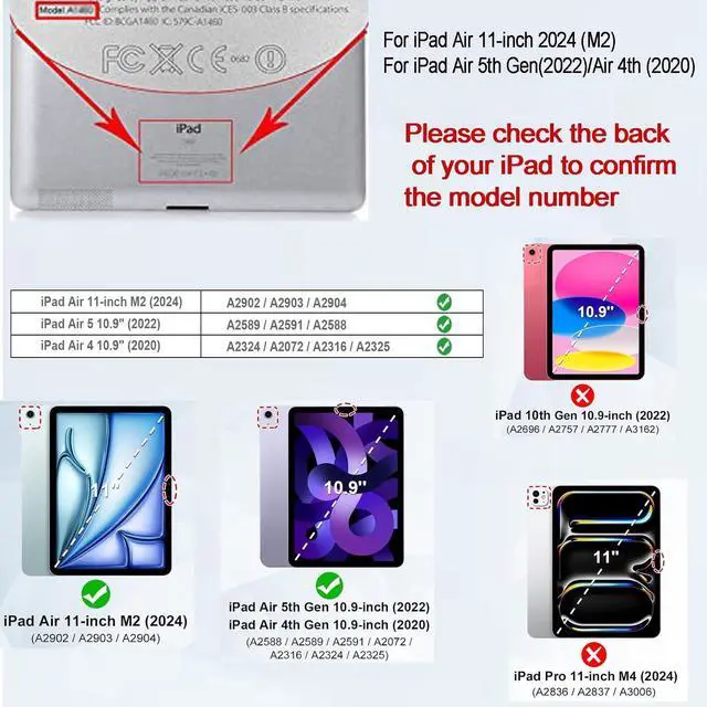 FIT 11-inch 2024 M2 and 10.9 -inch Air 6th/5th Gen- Specially designed case for Apple iPad Air 6th Gneration with M2 chip (11 inch 2024), for iPad Air 5th Generation 10.9 inch 2022, for iPad Air 4th Generation 10.9 inch 2020 -including the following
