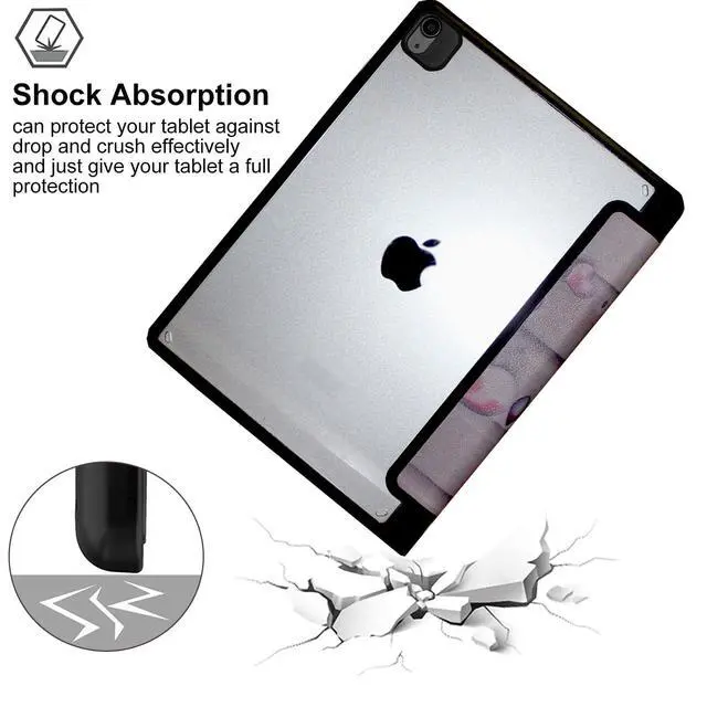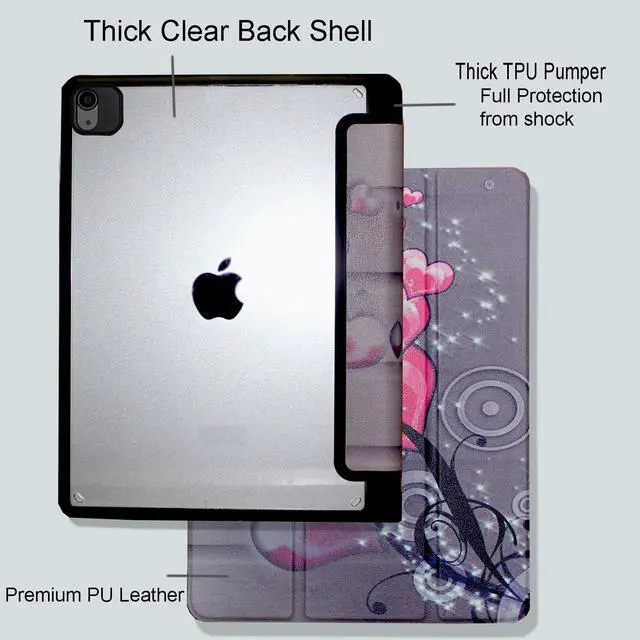 Models: A2902, A2903, A2904A2588, A2589, A2591, A2316, A2324, A2072, A2325. ( It does not fit other models and devices, please check the back of your tablet or the setting to confirm the model before order. ) ^^ SMART CASE/COVER - Auto wake up and put your tablet to sleep. ^^ STANDS - Provide 2 Integrated stands for typing and viewing in defferent angles. ^^ SHOCKPROOF - Transparent Acrylic hard shell with flexible TPU bumper protects your tablet from damage and shocks. Soft microfiber interior and premium synthetic leather exterior perfectly protects the device against scratches. ^^ PENCIL HOLDER -Built in pencil holder. Full accesses to all features and ports. (Case will come with a screen protector. Tablet and pencil not included)