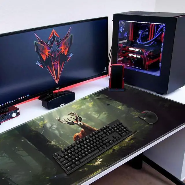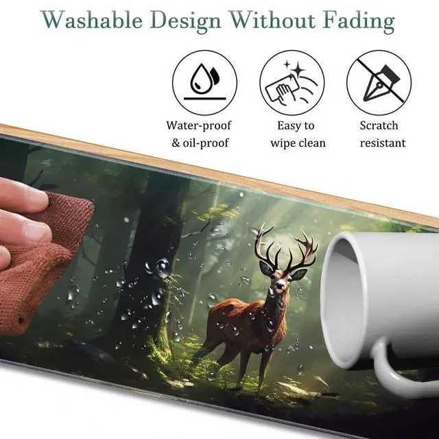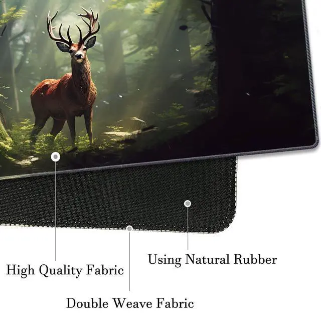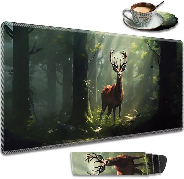 Extended Gaming Mouse Pad 31.5" x 11.8", with Edge Stitching, Non-Slip Rubber Base Keyboard Pad, Suitable for Work, Game, Office, Home and Coasters, Deer in The Forest