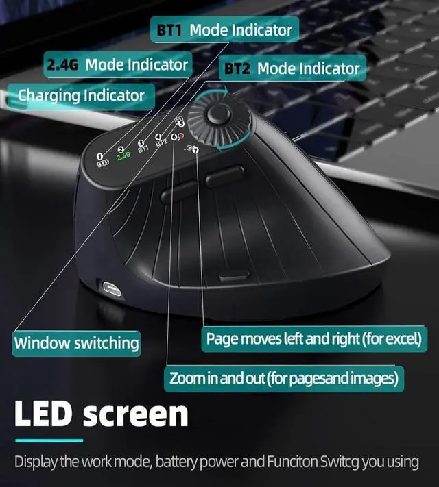 Widely compatible: The vertical mouse has 2.4G connection and Bluetooth direct connection ( 2.4G BT1 BT2) can remember three devices, and double-click the mouse switch button to switch channels (the first Bluetooth connection or reset the Bluetooth connection, you need to double-click to switch to BT1 channel or BT2 channel, and then press and hold the switch button for three to five seconds)