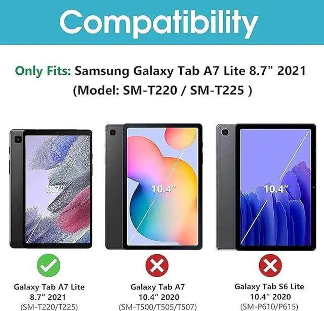 [Compatibility]: Designed for Samsung Galaxy Tab A7 Lite 8.7 inch Model (SM-T220/T225/T227) 2021. Precisely cut to preserve full use of volume buttons, charger, camera, microphone, headphone jack, and other ports or buttons, perfect fit. Easy to install and remove.