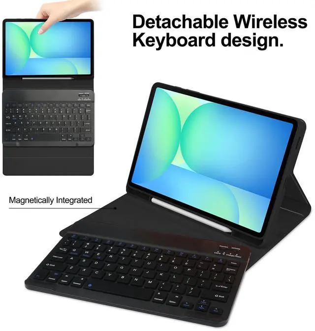 COMPATIBLE WITHWireless keyboard case compatible with Samsung Galaxy Tab S10+ Plus 13.1 inch 2025 released (Model: SM-X620/X626B), Please confirm the model number before purchase. Samsung Tablet or S-Pen NOT INCLUDED. ^^ Magnetically Detachable KeyboardThis for Galaxy Tab S10 FE Plus 13.1 inch case with keyboard is magnetic so it can be easily repositioned or removed from the case. Equipped with useful shortcut keys and compatible with Android, IOS and Windows systems, provide you with ultimate convenience. ^^ Multiple Viewing AnglesThis Galaxy Tab S10 FE+ case with keyboard has 3 grooves to adjust the viewing angle as you like, make your tablet stand steadily. Turn your Tab S10 FE+ into a laptop in one second, perfect for studying, working, writing, painting, reading or watching videos. ^^ Built-in S Pen HolderUser-friendly pen-slot design prevents the S-Pen from being lost and provides quick access at any time, also supports S Pen magnetic wireless charging on the back of the case (S Pen Not Included). You could carry Galaxy Tab S10 FE+ case with your device every time and everywhere. ^^ Full Body ProtectionThis Galaxy Tab S10 FE Plus case with keyboard adopt comfortable touch feeling exterior material, microfiber interior and soft TPU back cover, provide 360 protection against drops, bumps or bents, protecting your tablet from all sorts of dropping accidents.