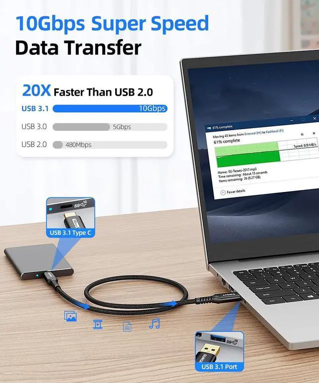 Data Transfer: USB 3.1 Gen 2 USB C to A Cable supports super speed data transmission up to 10Gbps, transfer HD movies, songs, file or photos in seconds. Backwards compatible to USB 3.0 and 2.0;