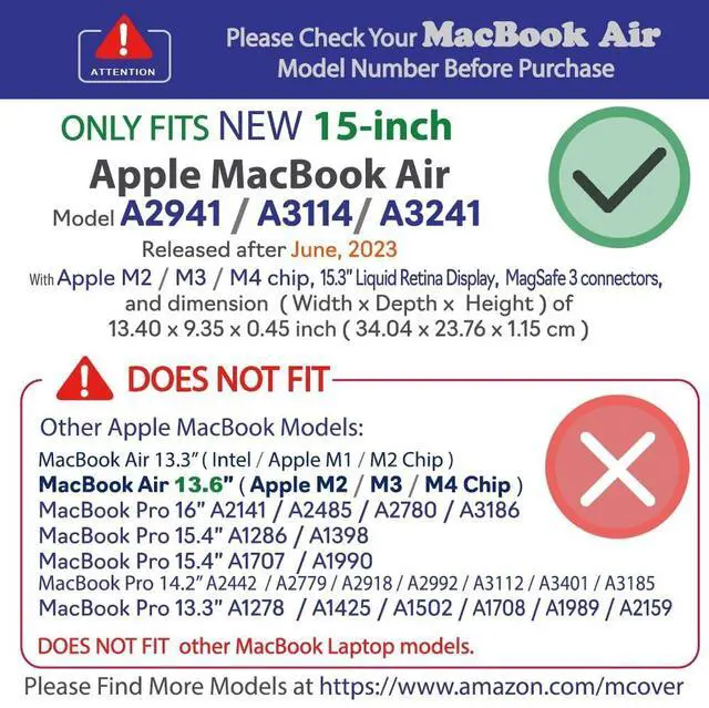 NOT compatible with: Older and smaller 11.6 / 13.3 / 13.6" MacBook Air (with Intel or Apple M1 / M2 chip) laptops Other 13" / 14" / 15 / 16 MacBook Pro laptops All Other MacBook modelsiPearl Inc is proud of being an "A+"-Rating BBB Accredited Business with 155, 000+ reviews and 99%+ positive feedbacks at. iPearl offers protective cases for ALL current MacBook & Chromebook models and selected popular PC laptops, protecting 5, 360, 000+ Mac ^^ PC ^^ Chromebook laptops and iPad ^^ Kindle ^^ Nook readers around the world so far! (Updated on 07/27/2023)