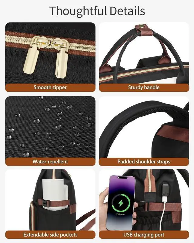 Keep Devices Powered On the Go: The work backpack has a USB charging port on the side pocket, which is super convenient for charging your phone while you're commuting (power bank is not included)