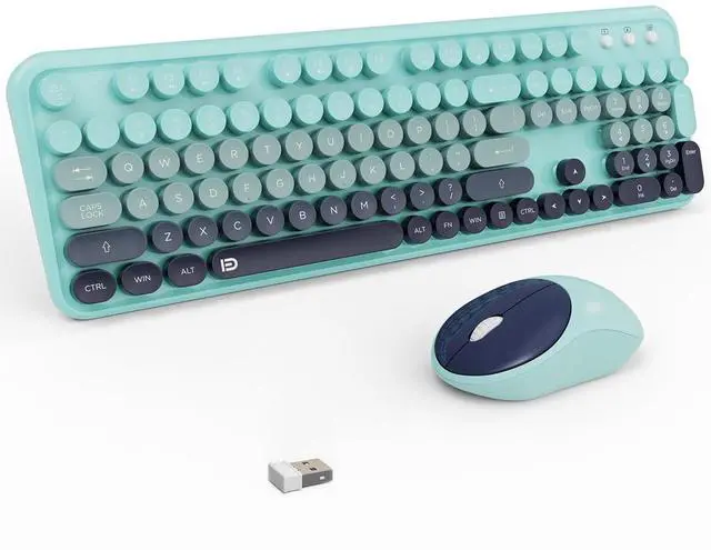 Blue Gradient Wireless Keyboard and Mouse - Warranty We offer a three-year worry-free warranty and a 60-day money-back guarantee or replacement option. If you have any inquiries or concerns regarding our blue wireless keyboard and mouse, please don't hesitate to contact us. Your satisfaction is our top priority. ^^ Fashion & Quiet Mouse Design Desk Accessories Keyboard - Stylish retro keyboard and mouse wireless with colorful round 105keys and glossy smooth edges to brighten your workspace. Featuring low-profile whisper-quet technology, this sleek combo ensures a distraction-free typing experience. Perfect for modern desks seeking cute wireless keyboard and mouse aesthetics.