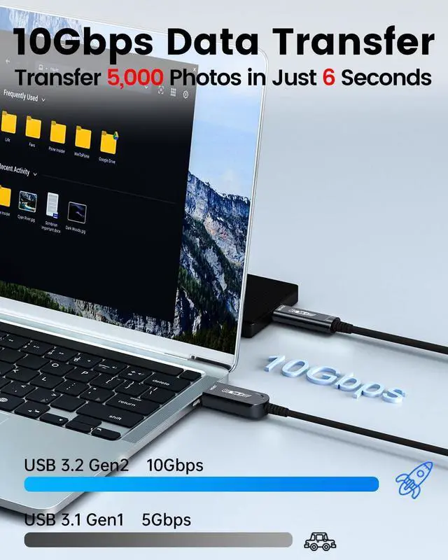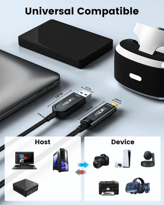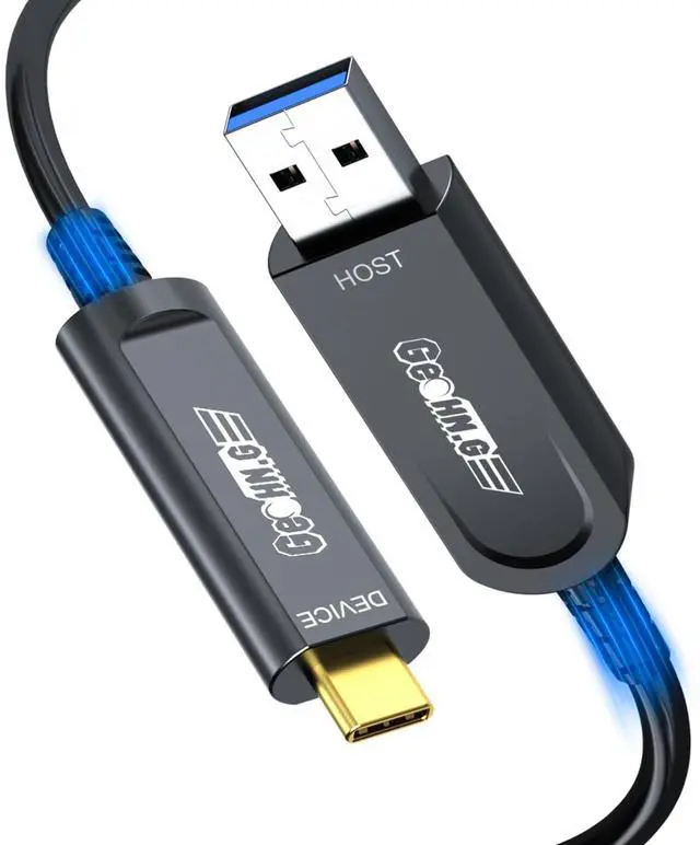 Fiber Optic USB 3.2 CableGEOHNG 10Gbps USB A to C active optical cable (AOC) uses optical fiber instead of copper as the high-speed signal transmission medium, without any signal loss/stuttering/black screen. Compared with traditional copper cable, it is softer, faster, lighter, and has perfect EMI/EMC technology. ^^ Durable BuildThis USB-A to USB-C extension cable is a four-core optical fiber with multiple internal shielding, and the fiber core is covered with Kevlar fiber. The advanced alloy and 24K gold-plated connectors can resist corrosion and are more durable. ^^ High-quality Electromagnetic CompatibilityThe fiber optic USB A to C extension 3.2 cable has high anti-electromagnetic and anti-radio frequency interference capabilities and can withstand more than 25, 000 times.