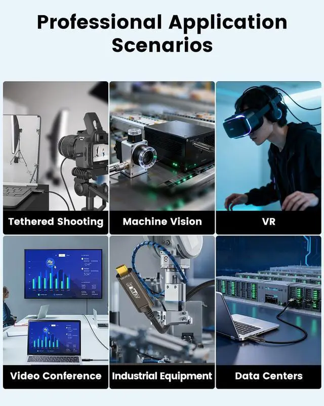 Bend tested without affecting cable flexibility and ensuring optimal performance. ^^ Wide CompatibilityThe USB C Cable supports up to 10Gbps bandwidth transmission speed, only data transmission, plug and play, backward compatible with USB 3.0 / 2.0 / 1.1. Compatible with VR, Oculus Quest 2, laptops, VR glasses, Xbox, webcam, Logitech camera, laptop, USB touch screen, vaddio cameras, mini pc, aver webcam, Kinect, RealSense, printer, scanner, flash drives, as well as for professional applications like HD business video meetings and video surveillance.