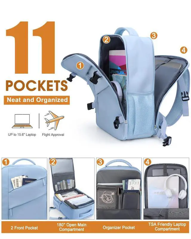 • 20L Capacity & 11 Pockets to Keep Organized:Roomy main compartments with 180 opening zipper allow access from the top like a traditional backpack or fully open like a suitcase. Say goodbye to mess and now every item has its place.2 front pockets for easy access to travel essentials, while a dedicated wet/dry bag separates toiletries. 1 zipper mesh pocket provides visual storage, Padded laptop compartment with 1 organizer pocket is nice for small items, keeping everything neat and within reach.