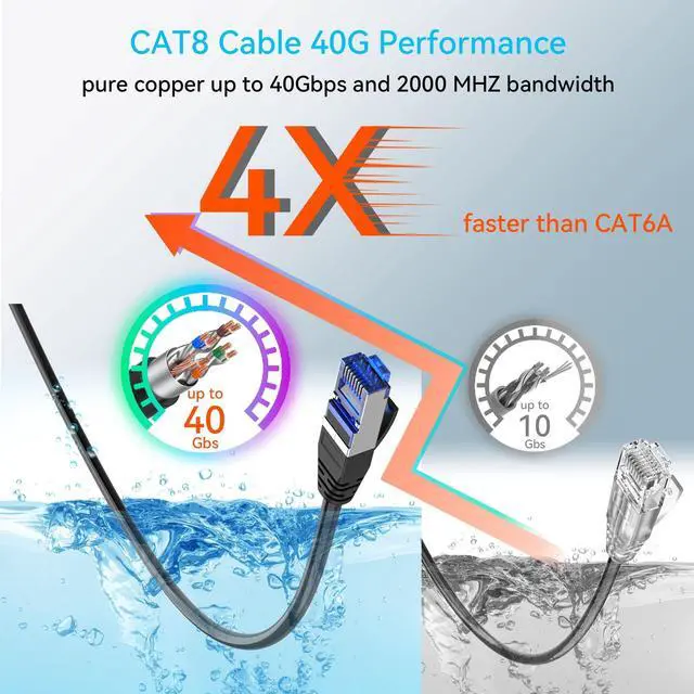 ^^ 40G Performance - Waterproof cat 8 outdoor ethernet cable is made of pure copper 30awg and outdoor ethernet cable 75 ft is perfectly good for data transfer applications up to 40Gbps and 2000 MHZ bandwidth. Cat8 Ethernet Cable has proven to be a game-changer in terms of speed and reliability and 4X faster than cat6a cable. ^^ Noise & Interference Free - Cat8 cable ensure a noise free and interference free cable run if network equipment is in an area with lots of interference from radio, power sources, server, router, UPS, cable modem, NAS, and so on.