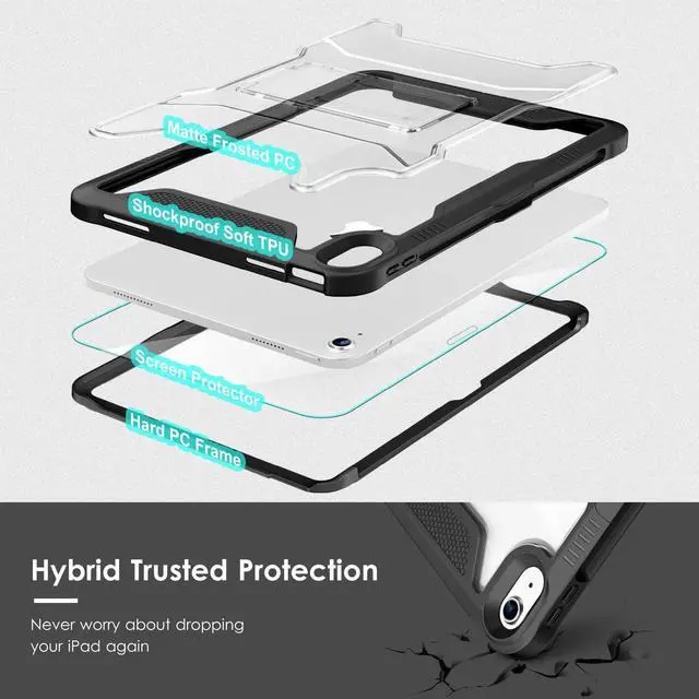^^ [Three-in-One Cover]: Offers the difference by Ultra Hybrid protection Design, Hard Matte Frosted PC back provides strong support, Anti-Fingerprint and Anti-Scratch. and Soft TPU frame protects your iPad from shocks, drops, and impacts. Front Screen Protector cover prevents scratches without compromising sensitivity. ^^ [ Slim and