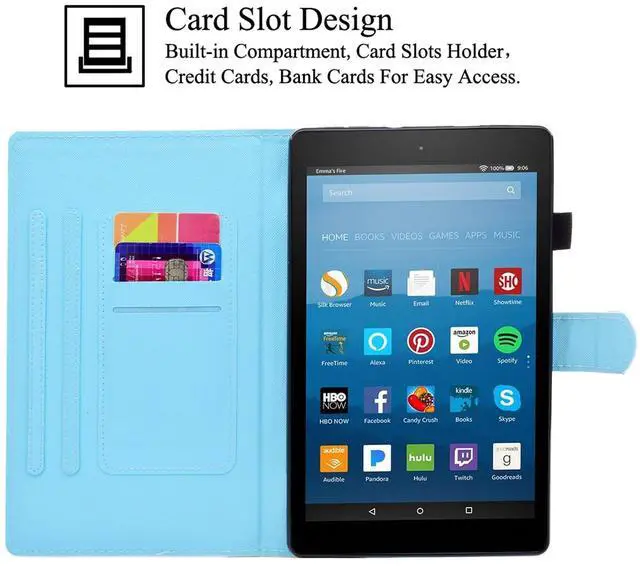 Package Content: 1 x PU Leather Folio Card Slots Case For All-New Kindle Fire HD 8 (2018/2017/2016 Release)