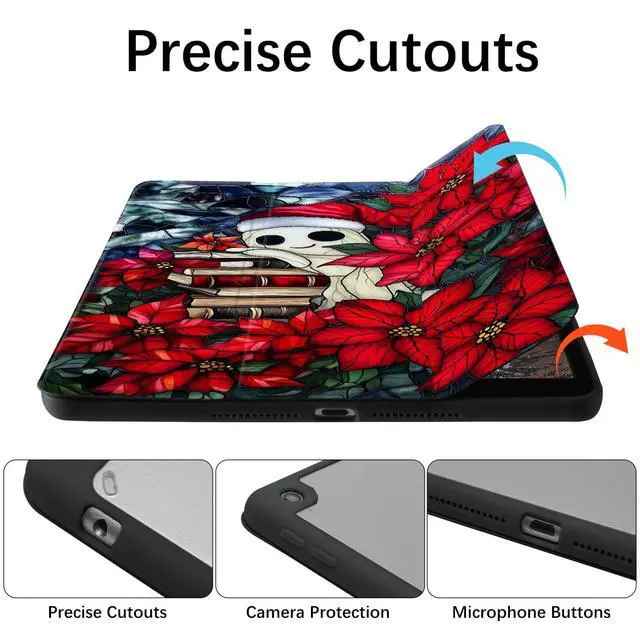 Protection: This unique Halloween case for ipad is made of two materials. The comfortable and soft silicone and Transparent anti drop acrylic back shell provide a comfortable touch for the pad. The back of this spooky ghost book case for ipad provides full body protection and is more durable than traditional silicone materials. It is less prone to yellowing, prevents scratches, and maximizes the protection of your pad from damage and scratchesAuto Wake/sleepBuilt-in magnetic strip, our spooky ghost book case for ipad can automatically wakes or puts your tablet to sleep when the lid is opened and closed, protecting and extending battery life; precise cutout also completely supports newest touch ID key function. Built in pen holder ensures the safety of your pencil. Adjustable angleThe trifold stand shell design of this unique Halloween case forapple ipad can easily change the angle to meet your viewing and typing needs. This lovely watercolor case for ipad can be folded into a stable triangle, firmly supporting your pad. Whether it's work, study, or watching movies, they can meet your needsPerfect
