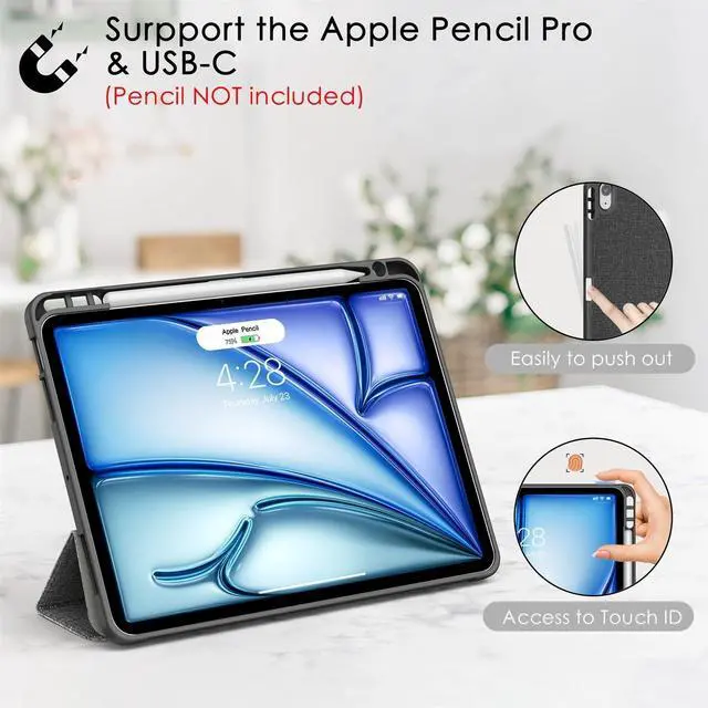 Built-in pencil holder: Tightly hold your Apple Pencil in the iPad Air 11 inch case, conveniently place and remove your pencil, no longer worry about losing or breaking.