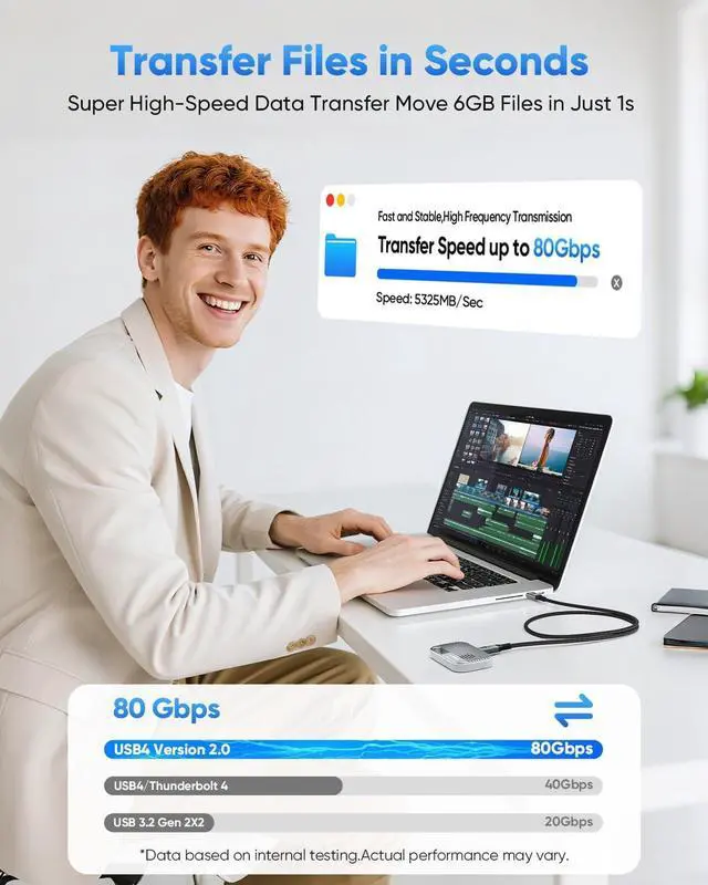 USB4 specs (TID: 14670, verified by USB-IF official). *Actual speed depends on your device. ^^ 240W PD Fast Charging-High