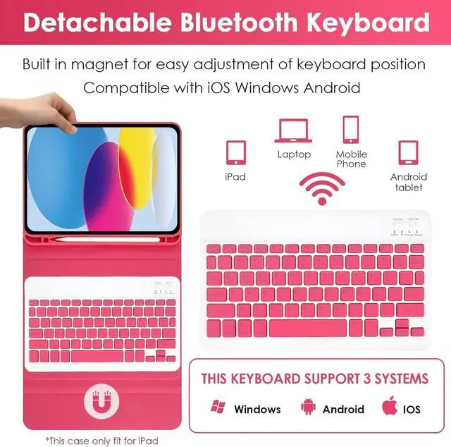 Nsyee Keyboard Case Compatible with iPad A16 11 inch 2025 (A3354/A3355/A3356), iPad 10th Generation 10.9 inch 2022 (A2696/A2757/A2777), Detachable Bluetooth US Layout Keyboard Case