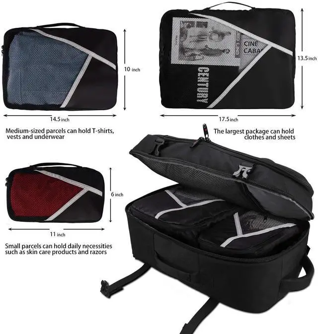 Travel: The large backpack carries 3 custom-made storage bags, which can improve your travel quality. The overall size meets the size standards of the aircraft, and the portable zipper opening facilitates you to quickly pass the airport security check. It has built-in elastic bands to keep your clothes from falling out.