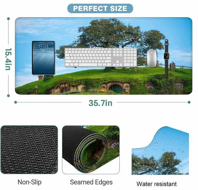 The mouse pad for desk size is 900 x 400 x 3mm ( 35.4 x 15.7 x 0.11 inch). About the package is includ one piece mouse pad, which lagre big extended size mousepadthe material is Chamfered fabric and Rubber Base. The soft and dense non-skid nature rubber base keeps the mat firmly in place, it can effectively prevent the mouse and keyboardfrom sliding and moving. suit to all types of desks including wood, glass, leather, metal, marble desk and so on. desk pad is flexibleenough to be rolled up carry, if you want to use when travel.