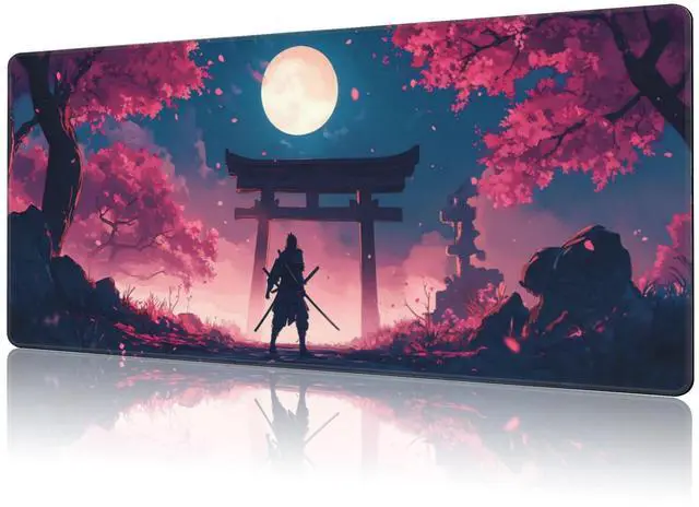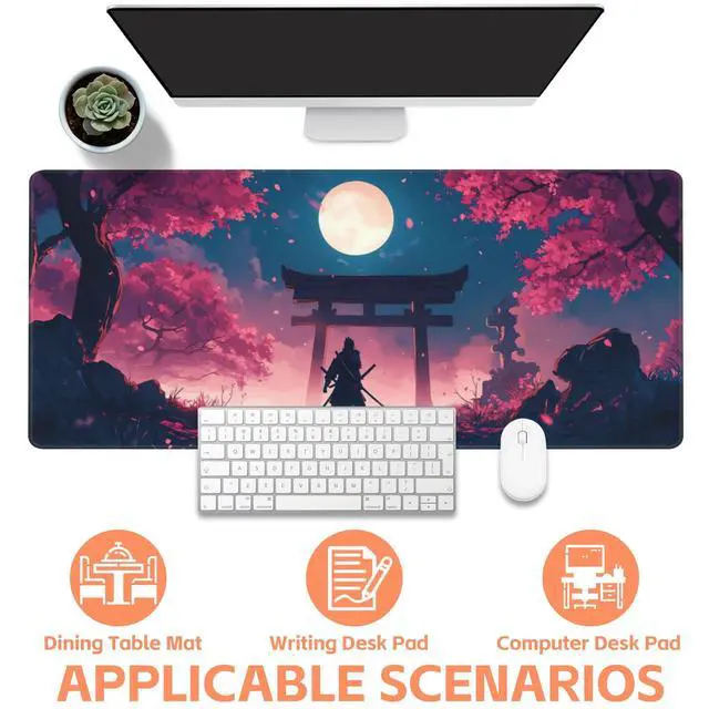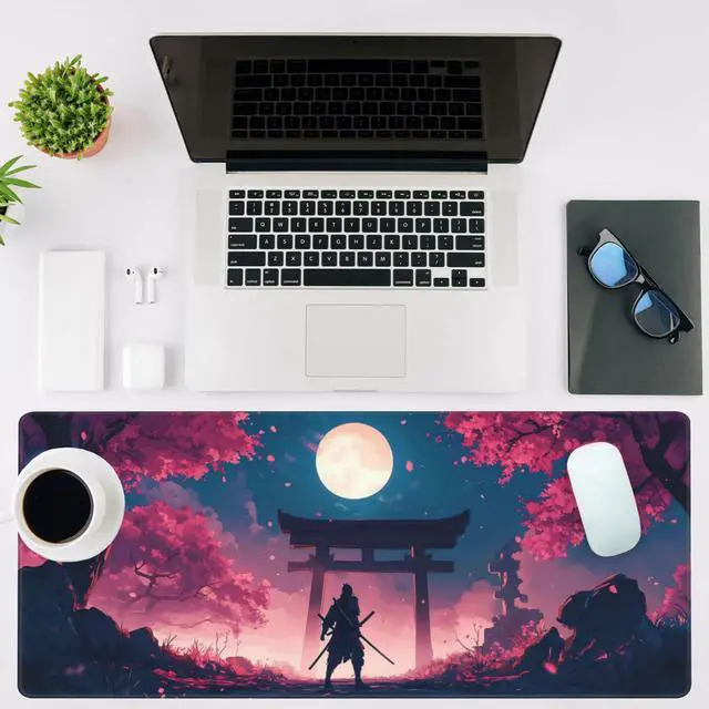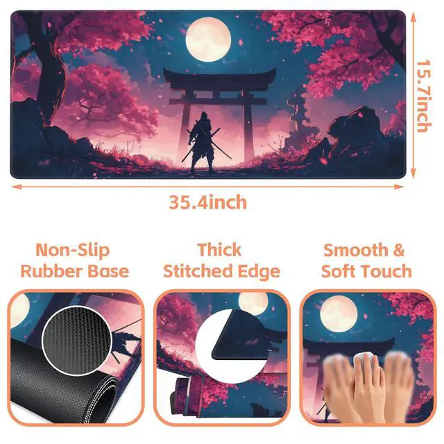 NIYLYNSYN Large Mouse Pad Japanese Samurai Extended Gaming Keyboard Desk Mat Non-Slip Rubber with Stitched Edge Desk Pad Suitable for Office Home Desktop Decoration (35.4 x 15.7 Inches)