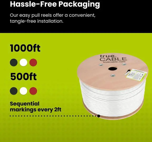 Supports Power over Ethernet: PoE/PoE+/PoE++ (IEEE 802.3 af/at/bt) 4PPoE up to 100W. ^^ [Hassle Free Packaging] 1000 feet (305 meters) comes conveniently pre-spooled in a tangle free, easy pull reel so you dont have to worry about getting behind on your next job. ^^ [Versatile] Direct burial outdoor Cat6 cable with UV-resistant, OSP jacket. Built to withstand sunlight, dirt, snow, and moisture. Install in the ground, conduit, or outdoors for home or business networks. ^^ [For Use Outdoors] UV resistant OSP jacket designed to withstand sunlight, snow, and ice. Rugged and durable for extreme environments. Bury directly in the ground or use in a conduit. ^^ [ Field Tested, Customer Approved] Our data cables have been tested with a Fluke DSX-8000 Versiv CableAnalyzer and comply with ANSI/TIA 568.2 -E standards, RoHS-3 compliant. Backed by our outstanding customer support.