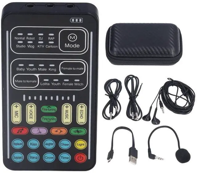 List: 1 x Voice Changer1 x Charging Cable2 x For Audio Cable1 x Live Microphone1 x Monitor Headphones1 x Grain Leather Storage Bag1 x English Manual