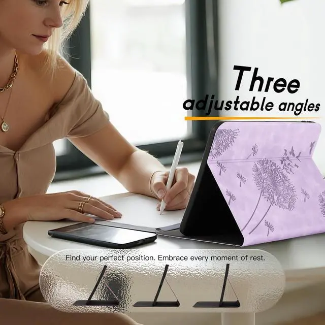 Model: A2757 A2777 A3162 A2696), not fit any other version, please check your device model before purchase. ^^ Dandelions, Birds, Freedom Embodying the spirit of nature, this apple ipad 11 inch case features an elegant embossed design with dandelions and a flock of soaring birds. It celebrates freedom and serenity while striking a perfect balance between artistic expression and refined craftsmanship. Through this design, we reflect our care for wildlife, attention to climate change, and dedication to environmental protection. ^^ Multi Layers ProtectionsThe outer layer is made of PU synthetic leather, it maximally simulates the texture of leather, keeping the comfortable hand-feeling of real fur and a better Heat dissipation effect. The inner layer uses wear-resistant TPU to protect your tab from all the scratches and accidental drops. Once the magnetic buckle closes up, this apple ipad a16 case is an indestructible castle ^^ Whole Plate cutting & Multi viewing AnglesThe case for ipad a16 uses a whole plate cutting technique, compared to those cases with a triple-folding cover, our case as a whole, is not only richer in materials but also has a greater quake-resistant attribute.