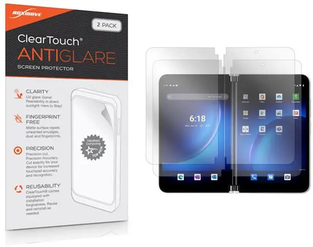 ✌ [TWO SCREEN MODEL] BoxWave Screen Protector Compatible With Microsoft Surface Duo 2 5G. Each package contains two (2) ClearTouch Anti-Glare screen protectors for EACH screen. Since your Surface Duo 2 5G has two screens, you will receive 4 total ClearTouches, a ClearTouch Applicator card, and microfiber cleaning cloth. ^^ 🎖 [SIMPLY THE BEST] Award winning Anti-Glare Surface Duo 2 5G Screen Protector, precision-cut to fit your devices exact dimensions. Dual-layered high-grade PET film from Japan designed for durability ^^ 🛡 [ULTIMATE PROTECTION] Protects your screens from scratches, fingerprints, and dust.