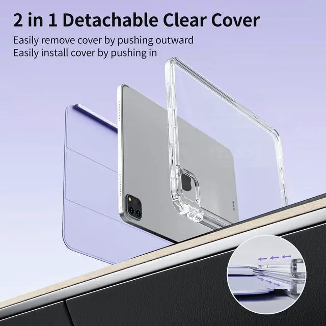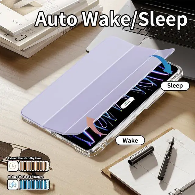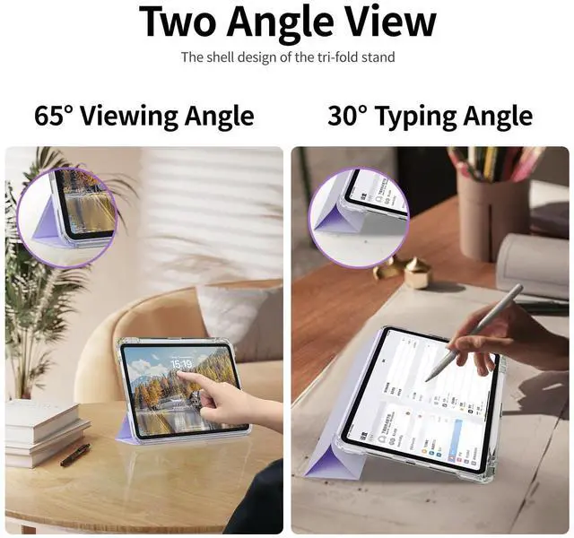 Please Note: Not compatible with any other iPad models. Please check the back bottom of your iPad to verify the model numberAXXXbefore purchase. ^^ Detachable HD transparent back case can be placed vertically or horizontally, multi-angle usage can be switched at will. Hardshell back cover with flexible TPU bumper protects your iPad from shocks, drops and impacts. Soft microfiber interior front prevents your tablet from scratched. And the crystal clear back cover can fully display your iPad color and logo. ^^ The iPad case built-in pencil holder and supports 2nd Gen Pencil magnetic and wireless charging, your Apple Pencil can be easily taken out and put in ( Pencil is NOT included). ^^ Stronger built-in magnets ensure the auto sleep/wake function engages quickly every time, help extend the standby time & battery life. ^^ Tri-fold front cover with dual standing positions (viewing and typing angles) for enjoy the most comfortable keyboard-typing and movie-viewing. fold it up into a stand with viewing, writing, and portrait modes, or remove it completely for better ergonomics while gaming.
