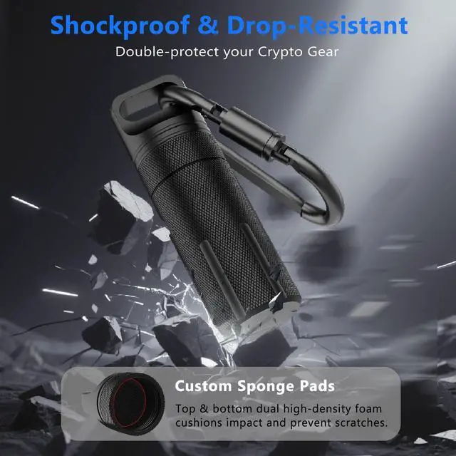 Dustproof Sealing: A reinforced silicone O-ring seal helps block out water, dust, moisture, and odors. The threaded screw-cap design prevents accidental opening and stays securely tightened, keeping your crypto keys protected whether youre at home, traveling, or outdoors.