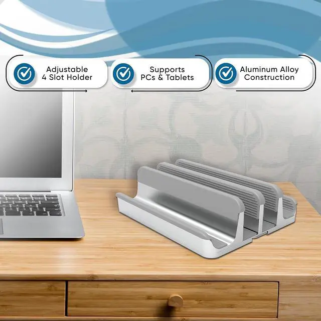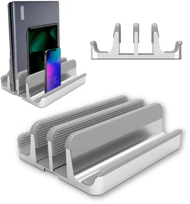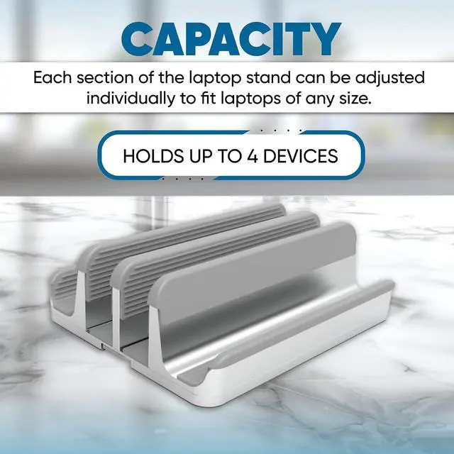 ^^ Hold more devices: Dock up to 4 laptops, or tablets or mobile devices in a single stand. Our laptop organizer has 4 adjustable slots design to hold devices up to 17.3 inches, including heavy gaming laptops. A perfect aluminum laptop storage rack for multiple laptops.
