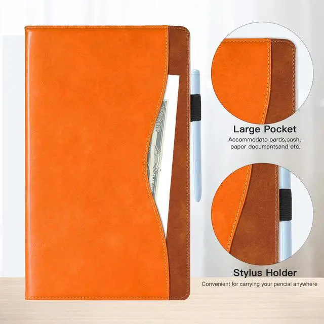 features: The high-quality synthetic leather shell can perfectly protect the equipment from damage and scratches. The non-slip stripes allow you to safely adjust the tablet to multiple angles, freeing your hands when reading and watching movies. Full access to all functions and ports. Built-in 2 card slots and 1 pen slot for you to store cards and stylus. High-quality design, exquisite and unique, provides sufficient protection while bringing a pleasant visual experience.