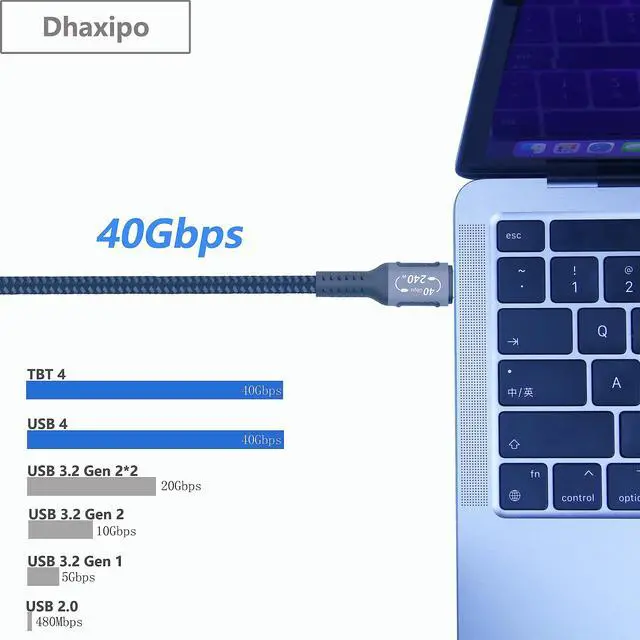 USB-C Compatible: The Dahxipo Thunderbolt 4 Cable fully supports all the awesome features of Thunderbolt 4 and USB4, while also being fully backward compatible with Thunderbolt 3 and USB 3 hosts and devices. A plug and play safe solution Compatible with any Mac, PC, iPad, Chromebook, Surface tablet or other device, display, or power supply with Thunderbolt 3, Thunderbolt 4, USB-C, or USB4 port.