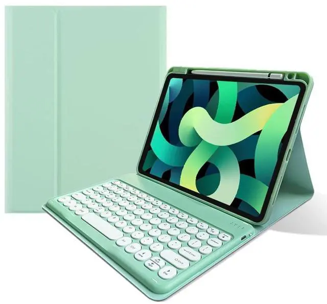 Multiple Viewing Angles & Removeable Magnetic Color Keyboard Bulit-in Rechargeable Keyboard . Cute round key, The magnetic wireless keyboard is removable .You can c