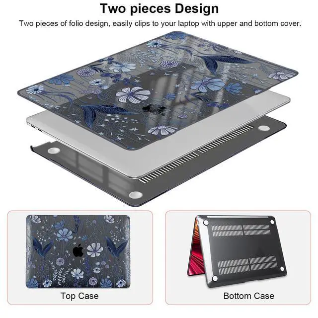 Protection: This MacBook Air 13 case only 0.6 lb, you'll feel your A2237 MacBook Air A2179 more natural in handthe. hard shell Macbook a1932 cover with two pieces snap on design, easy to put on and snap off. prevent your devices from unwanted cracks, scratches or damages. ^^ Unique 3D UV Painting, Slick hard shell cover with Crystal Black Printing finish to resist scratches and skidding. This macbook air 13 inch m1 Case allows full access to all ports, fully open over 135 degrees. ^^ Fully vented for safe heat disbursement. The two rows vent slots at the bottom of the case can easily keep your MacBook Air 13 inch A2337 device cool. The four raised rubber feet keep your laptop stable and safe. ^^ Including 1 for macbook air 13 inch 2020 case & 2 matching color keyboard covers (one fit MacBook Air 13 inch 2020 release model A2337 M1 A2179 and another fit MacBook Air 13 inch 2018 2019 release model A1932) & 1 screen protector & 1 webcam cover & 1 keyboard cleaning brush. to protect your laptop air 13 inch keyboard & screen against scratches and pollution and webcam cover guarding your privacy.
