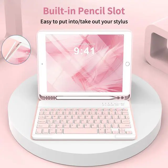 Pencil Holder: Keyboard case for iPad 9th generation built-in pencil holder, easily to carry your pencil with your device(Note: Pencil is not included). Hole in bottom of the pencil holder for easy access to your pencil ^^ Slim Wireless Keyboard for iPad 9th