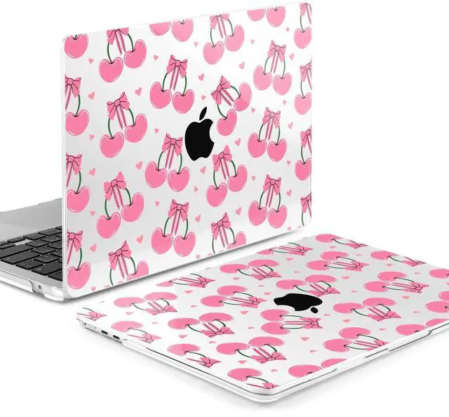 MEEgoodo for MacBook Air 15 inch Case (M4/M3/M2) 2025 2024 2023, Cover Fit Model(A3241/A3114/A2941) for 15.3-inch Laptop, Clear Shell with TPU Keyboard & Webcam Cover, Pink Cherries & Bows