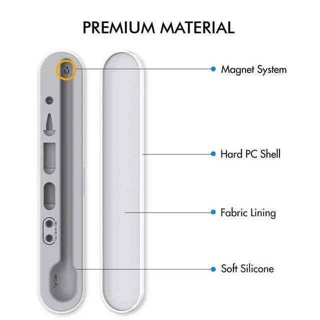 • SECURE STORAGEAdded magnets system to the middle and both ends of the box for secure storage of the Apple Pencil accessories.
