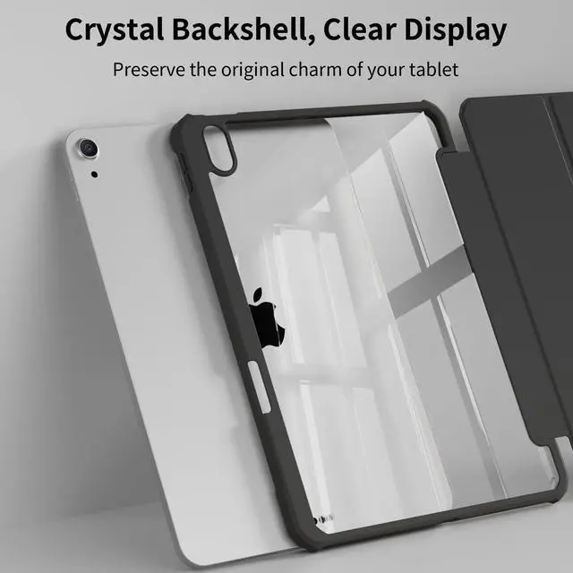 • Full Protection: This slim and lightweight of iPad air 11 inch case is easy to carry. Comfortable to touch leather PU front panel with microfiber inside to protect the screen, robust transparent PC back shows the original logo of the device and anti-scratch, anti-fingerprint and shock resistant